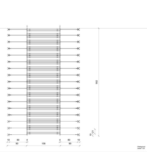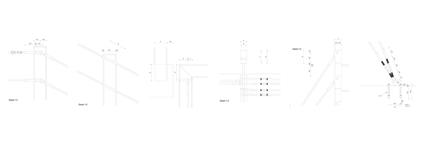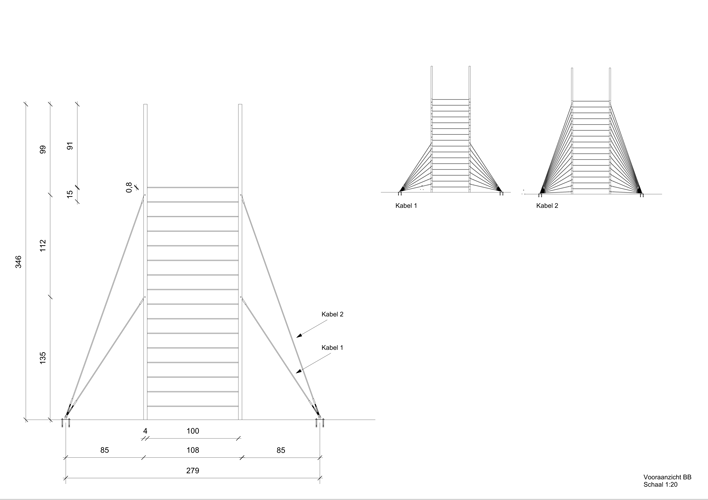 Voor het materiaalgebruik is er gebruik gemaakt van gespoten wit staal en staalkabel.