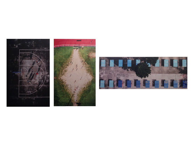 Rechts: tafeltennis in de schaduw bij volle zon.